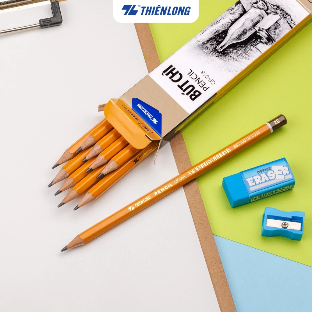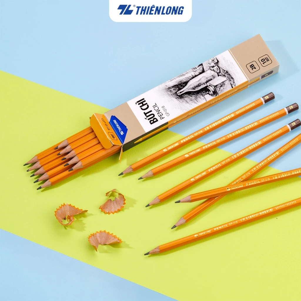 Bút chì gỗ 2B Thiên Long, viết chì chuốt nét đậm, đen, thân lục giác, luyện viết chữ đẹp